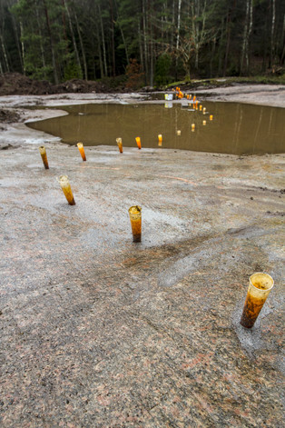 För att få rätt höjd på grundläggningen samt djupet i växtbäddarna behövde vi spränga ut lite berg. Framförallt nordöstra hörnet samt östra delen omfattades av sprängningen men även växtbäddarna i östra delen av huset för att få rätt djup och därmed rätt förutsättningar för kretsloppssystemet.